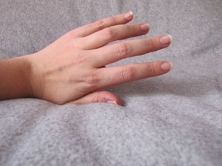 Ça, c’est ma main gauche au naturel, c’est à dire sans vernis, sans cuticules repoussées, sans artifices. J’ai la chance d’avoir des ongles très durs, très blancs et qui poussent plutôt vite sans que j’ai à faire quelque chose de particulier. Du coup, j’ai l’habitude de porter les ongles longs, quand ils sont courts j’arrive à rien, même taper au clavier ou utiliser mon smartphone devient une galère.