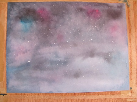 Ce jour là c’était rien. Et quand il n’y a pas d’image, je me dis que ce qu’il faut faire, c’est juste prendre de la couleur, poser et laisser faire. En gros, je passe en art abstrait (ou contemporain, appelez ça comme vous voulez) (les mots ne sont pas importants, c’est l’émotion et le geste qui en découle qui le sont je crois).